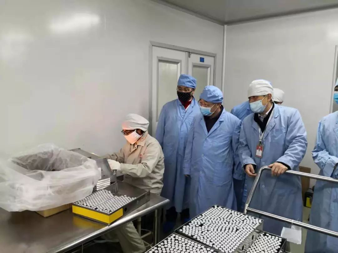 集團(tuán)蔡銳育部長(zhǎng)(前排中)到星群檢查防疫藥品生產(chǎn)情況