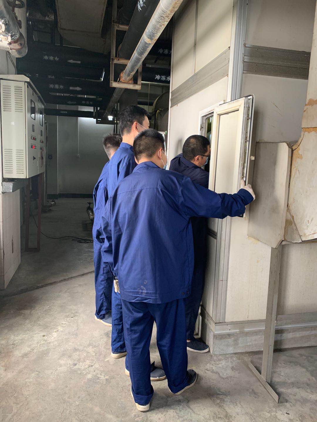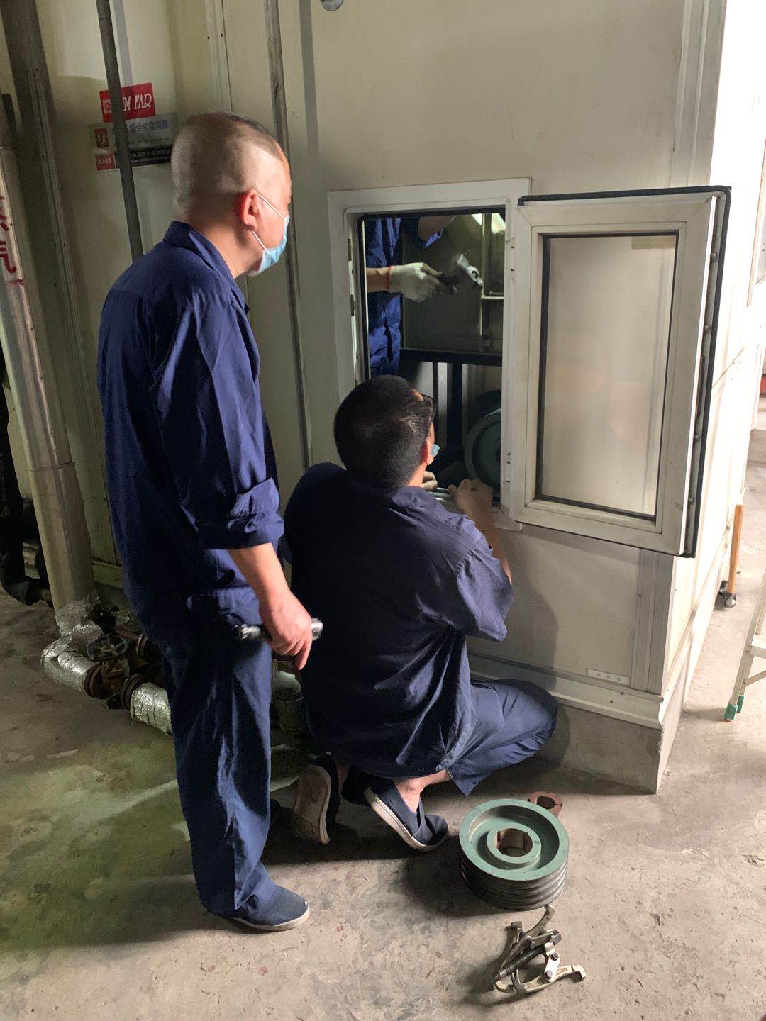 2020年5月13日凌晨4時(shí),此時(shí)動(dòng)力部綜合班巡檢人員劉廣龍、陳嘉明正在巡檢生產(chǎn)車間各樓層的空調(diào)運(yùn)行情況,在巡查過(guò)程中發(fā)現(xiàn)二樓3#組合式空調(diào)器發(fā)生變頻器故障。該空調(diào)器服務(wù)于軟膠囊車間的其中一條生產(chǎn)線。他們發(fā)現(xiàn)特發(fā)情況后,不敢怠慢,立即對(duì)3#空調(diào)器進(jìn)行全面檢查,最后確定是風(fēng)機(jī)軸承出現(xiàn)了異常。兩人經(jīng)過(guò)簡(jiǎn)單的商議,評(píng)估了設(shè)備的情況后決定:對(duì)出現(xiàn)異常的風(fēng)機(jī)軸承作簡(jiǎn)單的處理,重新運(yùn)行空調(diào)系統(tǒng),并嚴(yán)格監(jiān)控3#空調(diào)器的運(yùn)行狀態(tài)以及生產(chǎn)車間內(nèi)溫濕度的情況,首先確保車間的生產(chǎn)不受影響。運(yùn)行兩小時(shí)后,他們?cè)诒O(jiān)控的過(guò)程中再次發(fā)現(xiàn)風(fēng)機(jī)軸承存在較大的異響??紤]到3#空調(diào)器繼續(xù)運(yùn)行的風(fēng)險(xiǎn),他們迅速將情況反映給上級(jí)領(lǐng)導(dǎo),部門領(lǐng)導(dǎo)得知情況后高度重視,與制造部緊密聯(lián)系,決定在受影響的工序停止生產(chǎn)并把儲(chǔ)存的藥品轉(zhuǎn)運(yùn)到其它房間后,暫時(shí)停運(yùn)3#空調(diào)器。早上7點(diǎn)多,動(dòng)力部李漢周部長(zhǎng)馬上召集綜合班組員召開緊急會(huì)議,共同商議后確定了搶修方案。會(huì)后,在班長(zhǎng)黎沛強(qiáng)的指導(dǎo)下大家立即投入到緊張的搶修工作中去,在狹窄的風(fēng)柜里,師傅們各施其職,有的負(fù)責(zé)切割、有的負(fù)責(zé)拆除、還有的負(fù)責(zé)后勤保障,很快搶修人員已經(jīng)滿身汗水,連續(xù)干了3個(gè)多小時(shí),從不曾聽他們喊過(guò)一句“要休息”,大家心里都奔著同一個(gè)目標(biāo),就是:盡快把空調(diào)修好,恢復(fù)生產(chǎn)。午飯后,大家一刻也沒休息,又馬上投入工作。連續(xù)奮戰(zhàn)的他們終于把空調(diào)修好,試運(yùn)行正常后,下午4點(diǎn)恢復(fù)了正常生產(chǎn)。