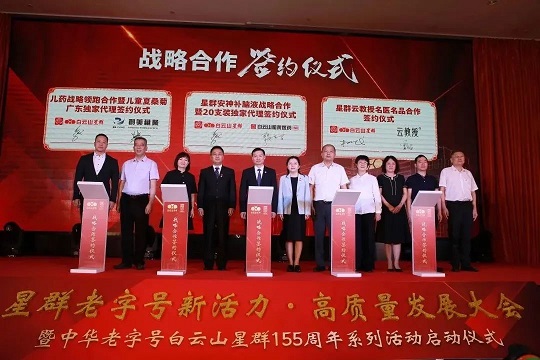 活動(dòng)最后,廣州白云山醫(yī)藥集團(tuán)股份有限公司副總經(jīng)理鄭浩珊對(duì)此次大會(huì)進(jìn)行了發(fā)言。她表示:巨星品種夏桑菊系列量?jī)r(jià)齊升,藥品主業(yè)根基更加扎實(shí);大健康業(yè)務(wù)堅(jiān)持“三高三名”戰(zhàn)略轉(zhuǎn)型升級(jí);星群公司在黨建、科技、市場(chǎng)、文化等多維度取得了豐碩成果,展現(xiàn)了星群老字號(hào)在新時(shí)代煥發(fā)的新活力。鄭總還提出了三點(diǎn)意見和建議。一是要扎實(shí)開展主題教育,推動(dòng)黨建引領(lǐng)再加強(qiáng);二是要落實(shí)做好“四拼一防”,推動(dòng)企業(yè)發(fā)展再增效;三是要深耕品牌文化建設(shè),推動(dòng)老字號(hào)新活力再加力。