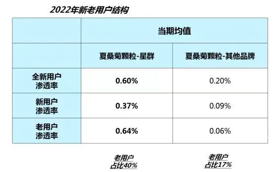 后疫情時(shí)代,國(guó)民經(jīng)過廣泛的健康教育后,健康意識(shí)普遍提高,科學(xué)營(yíng)養(yǎng)需求更加旺盛。藥品細(xì)分時(shí)代到來,兒藥賽道呈現(xiàn)巨大生命力。根據(jù)中康科技CMH數(shù)據(jù),疫情三年,夏桑菊增長(zhǎng)較總體感冒品類更穩(wěn)健而快速,是近年來備受關(guān)注的細(xì)分市場(chǎng)。中康科技智慧決策云中心產(chǎn)品總監(jiān)嚴(yán)礪寒表示,從小票數(shù)據(jù)來看,在快速增長(zhǎng)的夏桑菊市場(chǎng)中,星群夏桑菊以50%的份額穩(wěn)居第一,在感冒品類中每100位購藥用戶中有1.61人購買星群夏桑菊,其中老用戶占比40%。”