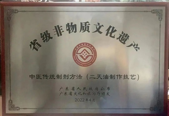 “廣東省非遺項(xiàng)目:二天油制作技藝”牌匾