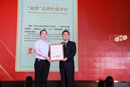在此次大會(huì)上,星群公司也有幸請(qǐng)到了北京名牌資產(chǎn)評(píng)估有限公司首席評(píng)估師、高級(jí)合伙人魏建國(guó)為星群公司進(jìn)行了價(jià)值評(píng)估,并為公司頒發(fā)評(píng)估證書。30.21億元——這是一代又一代星群人接力拼搏的結(jié)果,更是消費(fèi)者認(rèn)同的體現(xiàn)。
