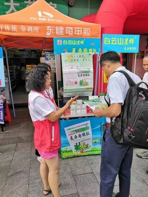 本次活動在廣州東興堂大藥房黃浦區(qū)沙步分店舉行。白云山星群終端連鎖部部長鄭澤峰、東興堂大藥房黨支部書記歐澤國,業(yè)務總監(jiān)許樹榮先生出席了本次活動。