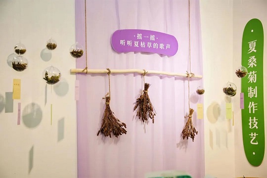 “搖一搖,聽聽夏枯草的聲音”“聞一聞,來自香藥的東方木質(zhì)調(diào)”等奇妙的中藥互動新體驗裝置,讓年輕觀眾獲得沉浸式、新鮮且多元的文化知識輸入。深刻了解夏桑菊的選料講究及中藥配伍中“君臣佐使”的理論,從黑油工藝“滴水成珠”、二天油“黑中透紅”的奧秘中感悟古人對中草藥提煉技術(shù)的智慧,引發(fā)他們對中藥文化背后的故事及其意義思考。