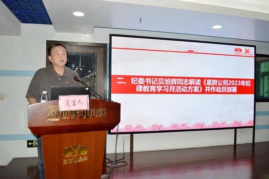 紀(jì)委書記貝旭輝解讀《星群公司2023年紀(jì)律教育學(xué)習(xí)月活動(dòng)方案》并作動(dòng)員講話