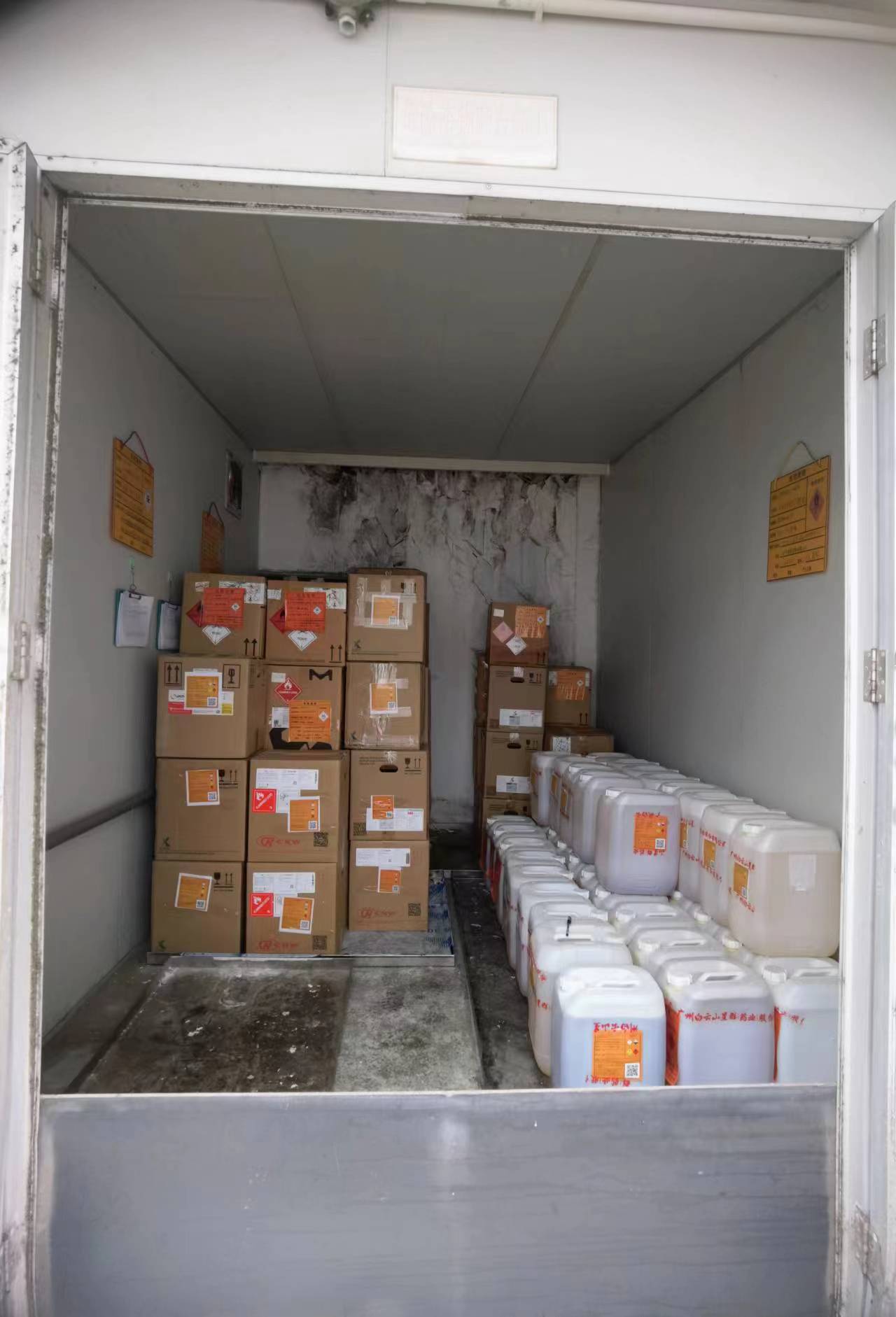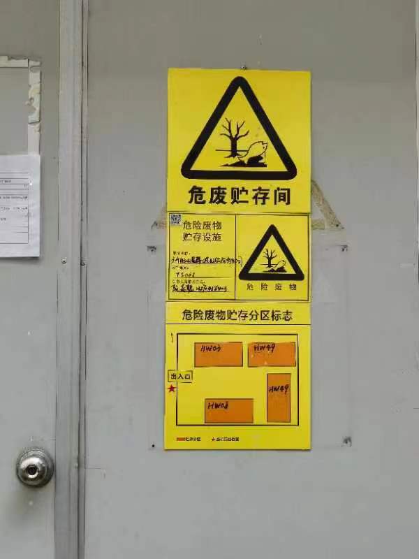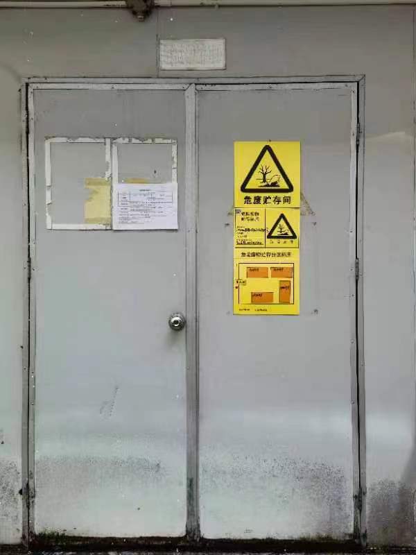 (危險(xiǎn)廢物定點(diǎn)放置,門口設(shè)置安全提醒標(biāo)志)
