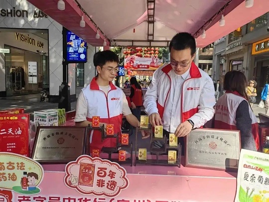 活動(dòng)現(xiàn)場,白云山星群展示了“三非遺”項(xiàng)目產(chǎn)品:二天油、夏桑菊顆粒、通竅救心油。同時(shí)也展示了公司其他明星產(chǎn)品及大健康產(chǎn)品。展現(xiàn)中華老字號(hào)以品質(zhì)傳承百年、將傳統(tǒng)技藝代代相傳的品牌文化魅力,讓老字號(hào)煥發(fā)新活力,精彩“出圈”!