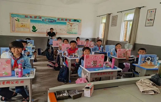 與此同時,距離廣州500公里外的湛江南興鎮(zhèn)平蘭村坑尾小學90余名學生也在5月31日下午欣喜地收到了星群公司為他們帶來的“六一”祝福及慰問品。他們一邊飲用夏桑菊飲料,一邊興奮地拿著收到的學習用品、小玩具、小扇子等星群文創(chuàng)小物品,感謝星群人對他們的關心關愛。當天傍晚,星群公司還對當?shù)丶彝ダщy學生進行了上門慰問。這是星群公司連續(xù)兩年為邊遠鄉(xiāng)村兒童開展“六一”助學送關愛活動。助力鄉(xiāng)村振興,推動“百千萬”工程落地見效,星群一直在行動!