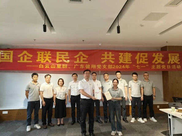 為進(jìn)一步深化落實(shí)“紅聯(lián)共建”工作機(jī)制,扎實(shí)推進(jìn)黨紀(jì)學(xué)習(xí)教育,促進(jìn)企業(yè)共同發(fā)展。星群公司與重點(diǎn)客戶中的民營企業(yè)“健翔藥業(yè)”在7月17日聯(lián)合舉辦紅聯(lián)共建“七一”主題黨日活動。星群公司黨委書記、董事長胡文新,健翔藥業(yè)董事長凌華耀,星群公司總經(jīng)理賀慶、黨委副書記鄺敏儀以及雙方企業(yè)8名黨支部的書記、黨員代表等20余人參加了活動。