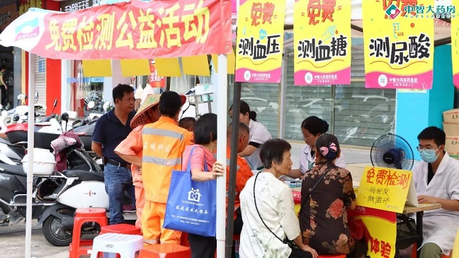 公益捐贈活動結束后,為更好落實對環(huán)衛(wèi)工人的關愛,星群和中智為現(xiàn)場開展慢病檢測、夏桑菊試飲的服務,并在晚上開展了文藝表演活動,為他們傳遞溫暖。