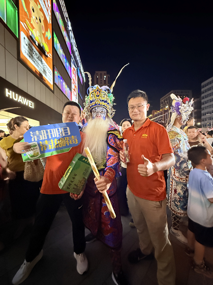在群眾們觀舞之余,星群公司為英歌舞表演者們送上了夏日貼心的健康好禮——星群夏桑菊和二天油。