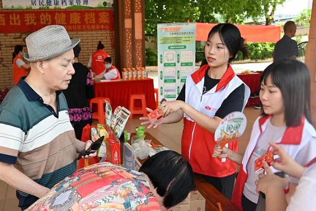 在白云山星群的攤位前,“一滴油,一份心,星群二天油無蚊行動” 的主題格外醒目。工作人員一邊向居民發(fā)放基孔肯雅熱預(yù)防宣傳手冊,一邊講解科學(xué)防蚊的重要性:“要預(yù)防蚊媒傳染病,做好防蚊工作是關(guān)鍵。星群二天油就是大家防蚊的好幫手。” 攤位上準(zhǔn)備的免費(fèi)試飲和免費(fèi)領(lǐng)取二天油福利,吸引了眾多居民。大家在領(lǐng)取二天油時(shí),工作人員還會特意演示其使用方法,告知大家如何通過涂抹二天油有效驅(qū)趕蚊蟲,降低被叮咬感染疾病的風(fēng)險(xiǎn)。