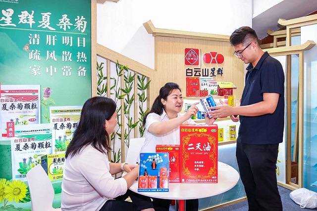 此外,作為白云山星群拳頭產(chǎn)品之一:星群二天油同樣獲得了參展人員的青睞。始創(chuàng)于1915年的二天油,于2022年入選廣東省第八批省級非物質(zhì)文化遺產(chǎn)代表性項目名錄,傳承110年至今,其制作的關(guān)鍵在于黑油煉制。秉持其名源自《幼學瓊林》“感救死之恩曰再造,誦再生之德曰二天”的初心,黑油制作工藝流程一直嚴格遵循傳統(tǒng)工藝對原料成色、投料時間、配置程序的嚴格標準,而且煉制時間不少于一個月。達到“滴水成珠”品質(zhì)的黑油與薄荷等藥材混合后,制成棕中透紅、帶有薄荷香氣的二天油,它不僅能防蚊驅(qū)蚊、緩解叮咬不適,還可芳香開竅,緩解傷風感冒、舟車眩暈、中暑等癥狀。