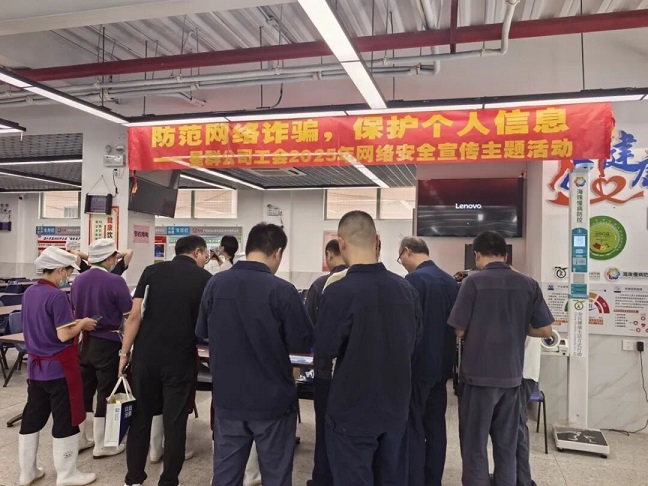 活動(dòng)啟動(dòng)當(dāng)天,公司工會(huì)午餐時(shí)段在職工食堂設(shè)立“網(wǎng)絡(luò)安全宣傳攤位”,工作人員為職工提供面對(duì)面咨詢(xún),實(shí)時(shí)解答網(wǎng)絡(luò)安全相關(guān)問(wèn)題。并在現(xiàn)場(chǎng)設(shè)置二維碼引導(dǎo)職工在線(xiàn)學(xué)習(xí),方便員工自主獲取知識(shí),這種線(xiàn)上線(xiàn)下同步結(jié)合的創(chuàng)新宣講方式獲得員工的肯定。